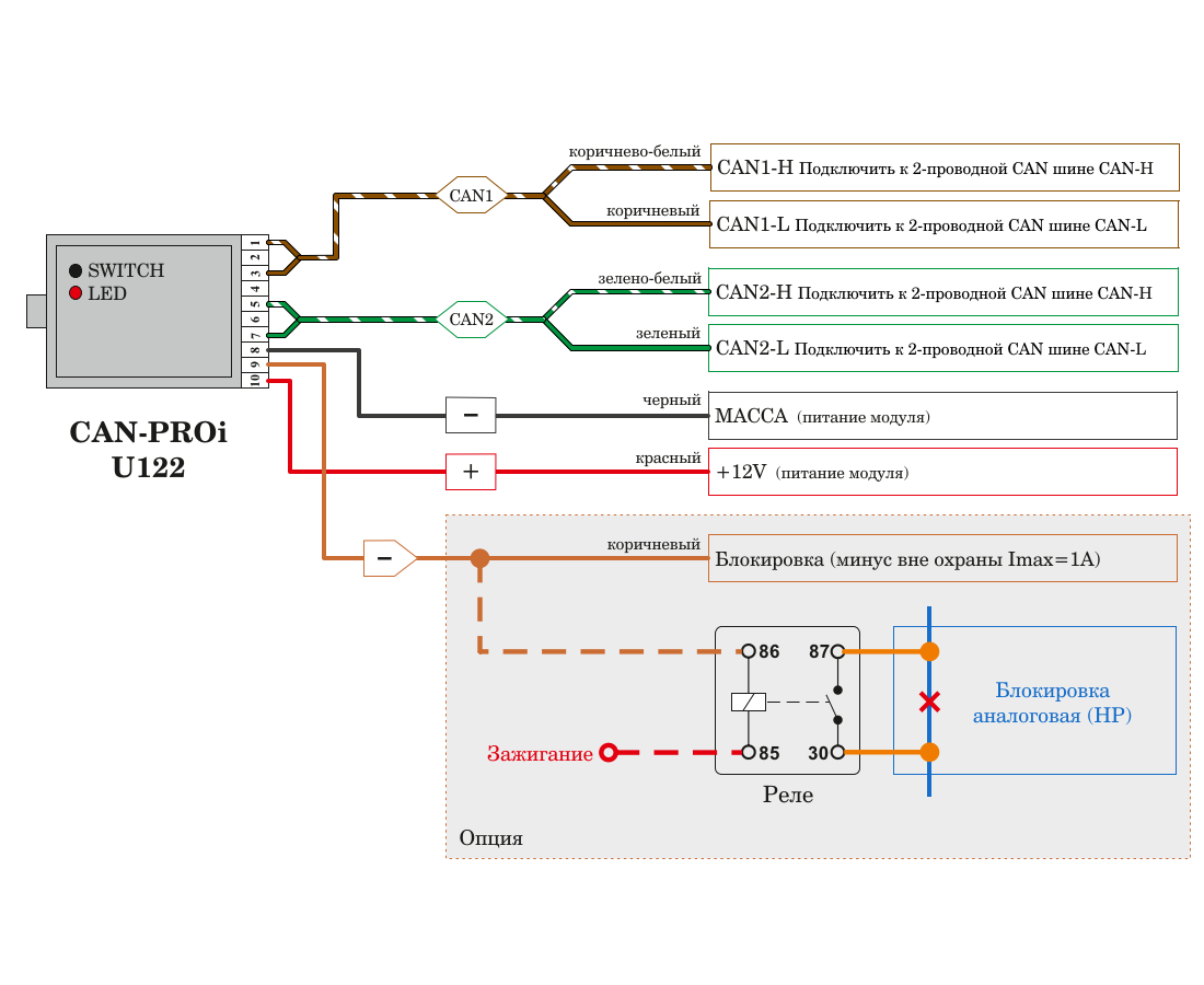 Ввод номера программы: В технологической карте указан пятизначный номер программы: Ввод программы: Нажмите и удерживайте кнопку SWITCH (далее по тексту - кнопка) до начала частого мигания индикатора состояния CAN шины LED (далее по тексту - светодиод), затем отпустите кнопку. Светодиод медленными вспышками начнёт отсчитывать первую цифру номера программы, после нужного количества вспышек снова нажмите и удерживайте кнопку до начала частого мигания светодиода, затем отпустите кнопку. Последующие цифры программы (5 цифр в общей сложности) вводятся аналогично вводу первой цифры. Если программирование прошло успешно, то светодиод вспыхнет 10 раз, подтверждая ввод номера программы. Затем контроллер перезапускается, сигнализируя 2 длинными миганиями светодиода